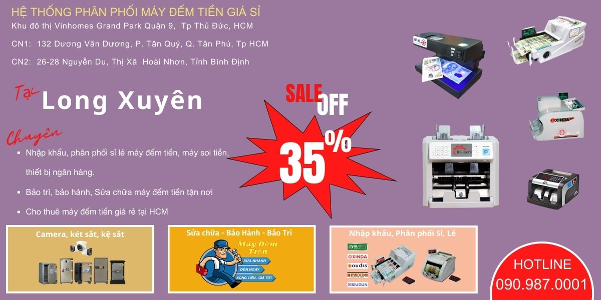 Quý khách hàng tại tại Long Xuyên có nhu cầu mua các dòng máy đếm tiền của các thương hiệu nổi tiếng Maxda, Oudis, Xinda, Xiudun…. Hoặc có nhu cầu sửa chữa, bảo trì, bảo hành máy đếm tiền hãy liên hệ hotlilne Hiêp Hưng Thịnh để được phục vụ