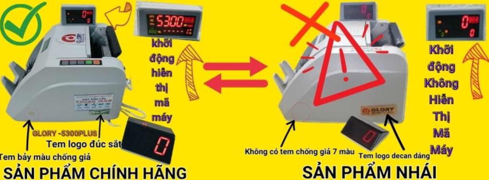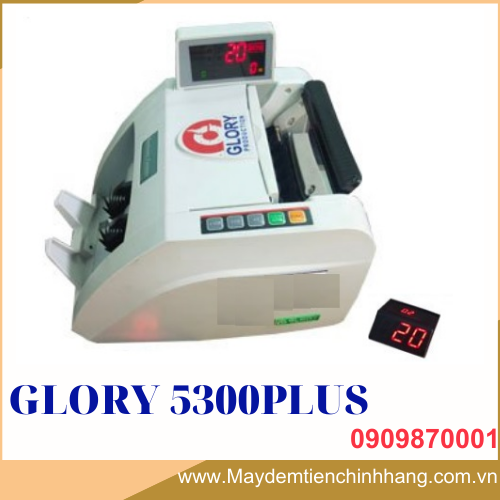 Máy đếm tiền Glory 5300Plus là máy phát hiện tiền giả, tiền lẫn loại, điện áp: 220V. Công suất: 60W. Tốc độ: 1.200 tờ/phút. Trọng lượng: 6.5kg, nhập khẩu: 100%