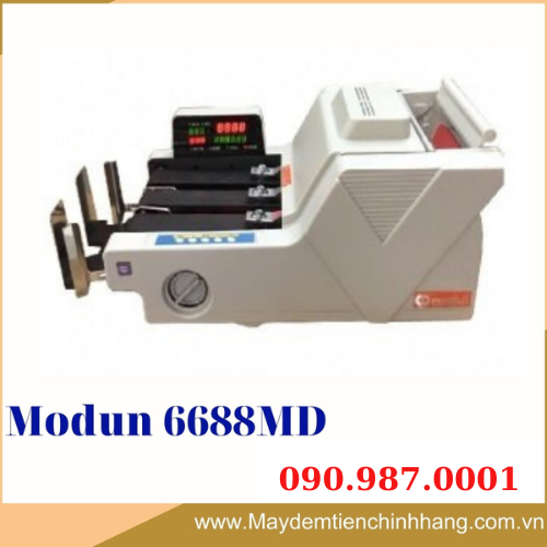 Máy đếm tiền MODUL 6688 MD thiết kế đẹp, kiểu dáng dài có băng tải, gọn nhẹ, máy tự động đếm, đếm được tiền giấy và poloyme, máy có cả chức năng phân biệt tiền giấy, phát hiện các loại tiền giả và siêu siêu giả. Máy ấn định số đếm, đếm cộng dồn. Hiển thị màn hình LCD ( 2 mặt số ), có mặt số LED kéo dài dang rất phổ biến trên thị trường và được người tiêu dùng rất ưu chuộng.