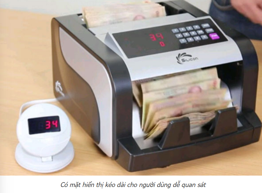Dễ dàng sử dụng: Bạn dễ dàng sử dụng máy qua màn hình hiển thị LCD ( 1 mặt số ), có mặt số LED kéo dài. Đồng thời máy đếm tiền ấn định số tờ cần đếm, đếm cộng dồn, đếm mẻ,giúp tiết kiệm thời gian và thuận tiện hơn cho bạn trong công việc.