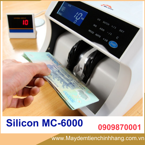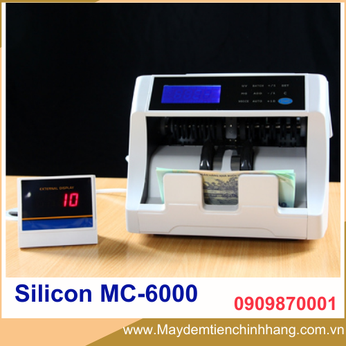 Chiếc máy đếm tiền thế hệ mới Silicon MC-6000 có khả năng đếm tiền giấy và polime, VNĐ, ngoại tệ, đặc biệt còn có khả năng phát hiện tiền giả và các tính năng đếm mở rộng khác.