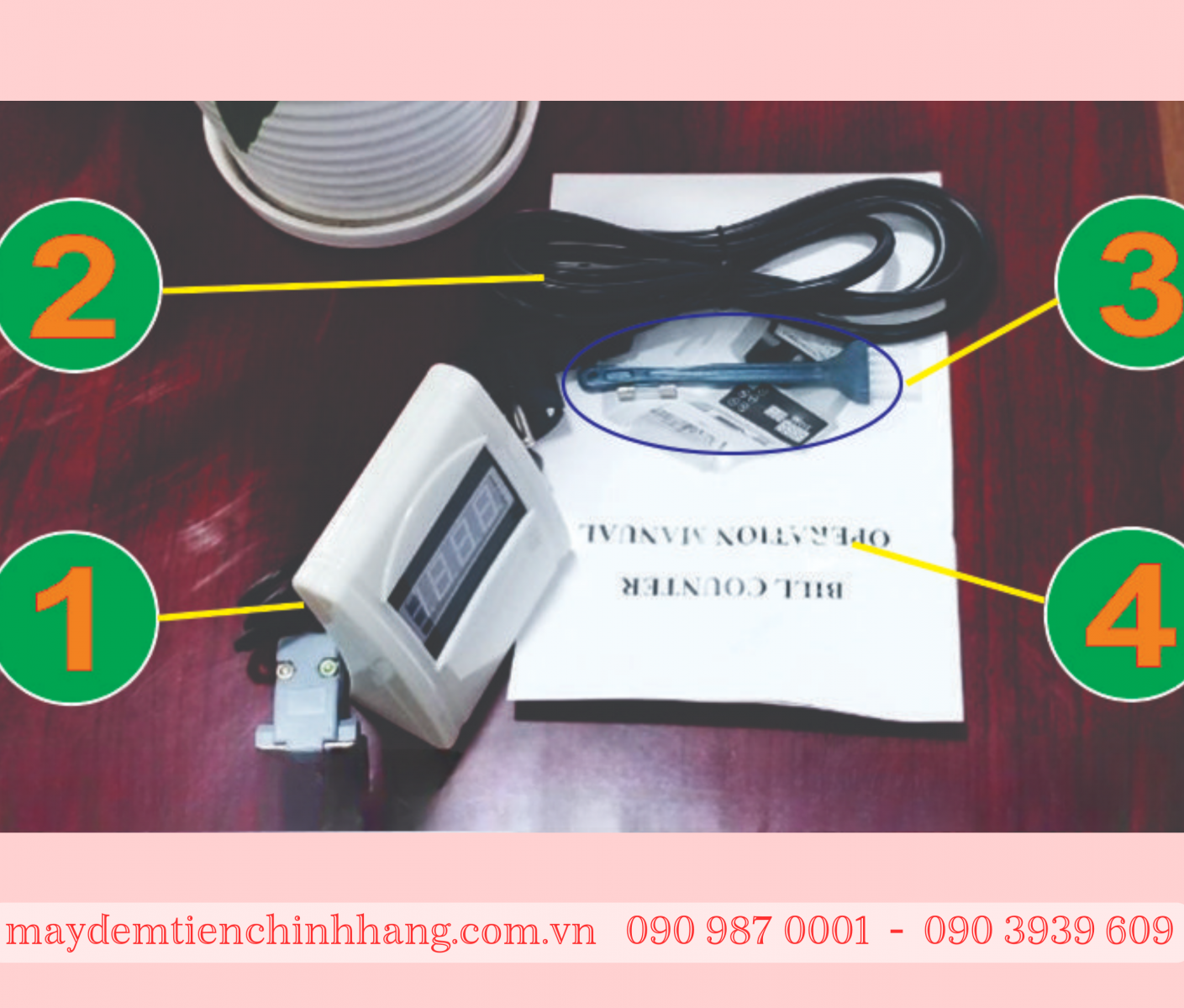 + Trên thị trường hiện nay máy đếm tiền được đóng gói quy cách 1 sản phẩm / thùng với bộ linh kiện tặng kèm theo như dây coroa, bánh xe cao su, đệm caosu. cọ vệ sinh, dây nguồn.